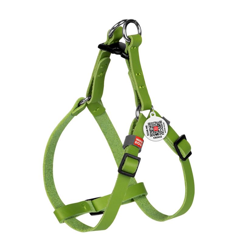Шлея для котов и мелких собак кожаная waudog classic c qr паспортом, пластиковый фастекс,...