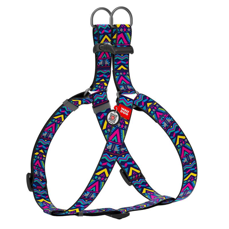 Шлея для собак waudog nylon c qr паспортом, рисунок "инди", пластиковый фастекс, ш 20 мм,...