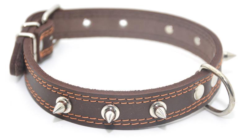 Нашийник для собак шкіряний з шипами подвійний одш коричневий одш 3,5/44-55 см
