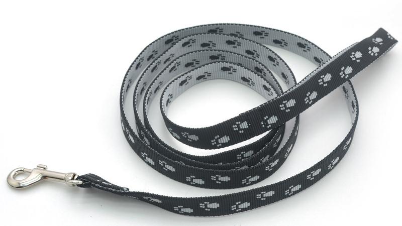 Повідець для собак і котів капроновий лапки 2,0 см чорно-сірий лапки пкл 2,0/120 см