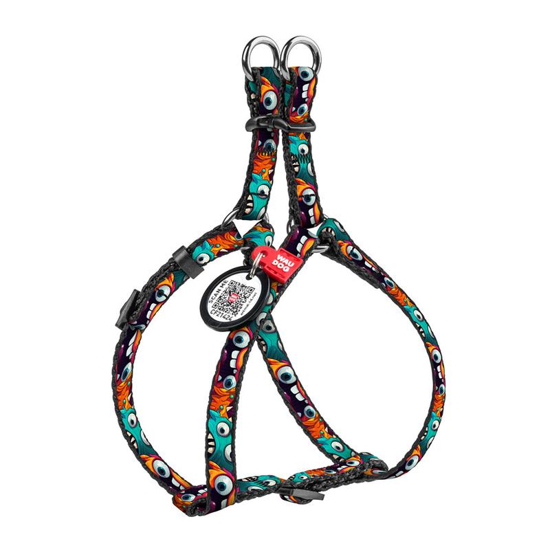 Шлея для котов и мелких пород собак waudog nylon c qr паспортом, рисунок "зубастые монстры...