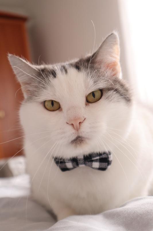 Твидовый ошейник для кошек и мелких пород собак со съемным бантиком черно-белый