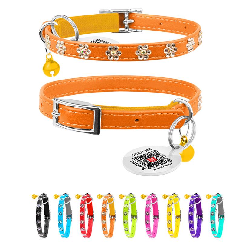 Нашийник waudog glamour з резинкою, клейовими стразами "квітка" для котів (ширина 9мм, дов...
