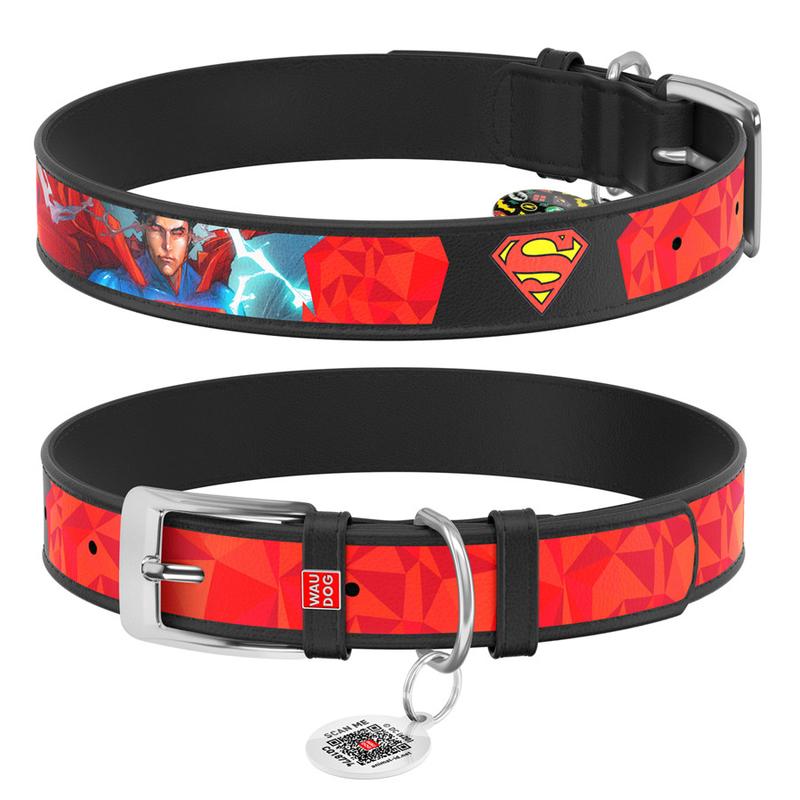 Нашийник для собак шкіряний waudog design з qr паспортом, малюнок "супермен1", xxs, ш 12 м...