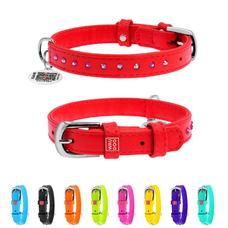 Нашийник для собак шкіряний waudog glamour з qr паспортом, з клейовими стразами, ш 15 мм,...