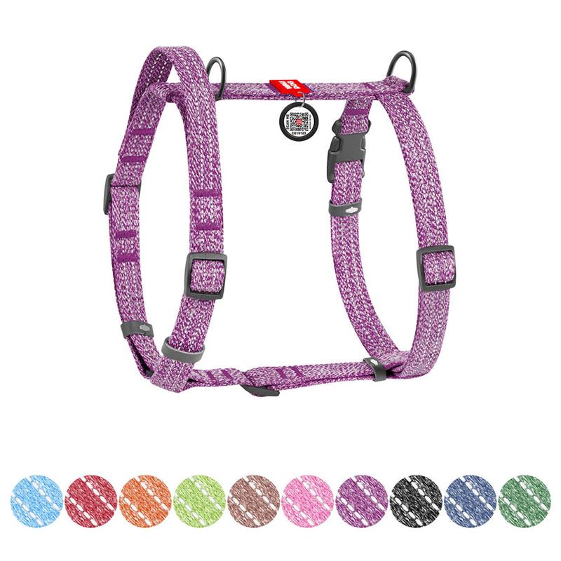 Шлея виготовлена з відновленої бавовни, що робить її екологічно чистою та зносостійкою. Гіпоалергенний матеріал забезпечує комфорт для пухнастого улюбленця, а вплетена світловідбивна нитка гарантує безпеку під час прогулянок у темний час доби. Шлея розроблена таким чином, що при натягу повідця не відбувається стискання дихальних шляхів тварини. Має 2 півкільця для повідця (верхнє та нижнє), що дозволяє більш рівномірно розподілити фізичне навантаження на опорно-руховий апарат собаки. Переваги: •Анатомічна конструкція; • Екологічний та гіпоалергенний матеріал; • Довічна гарантія на фурнітуру; • Наявність адресника з QR-паспортом • Світловідбивні елементи
