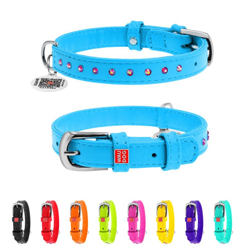 Нашийник для собак шкіряний waudog glamour з qr паспортом, з клейовими стразами, ш 15 мм,...
