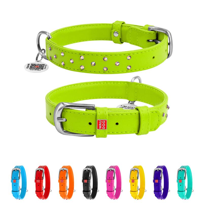 Нашийник для собак шкіряний waudog glamour з qr паспортом, з клейовими стразами, ш 25 мм,...
