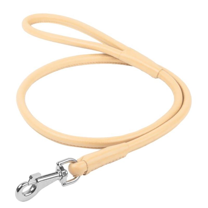 Поводок для собак кожаный waudog glamour круглый, дл 13 мм, дл 122 см бежевый