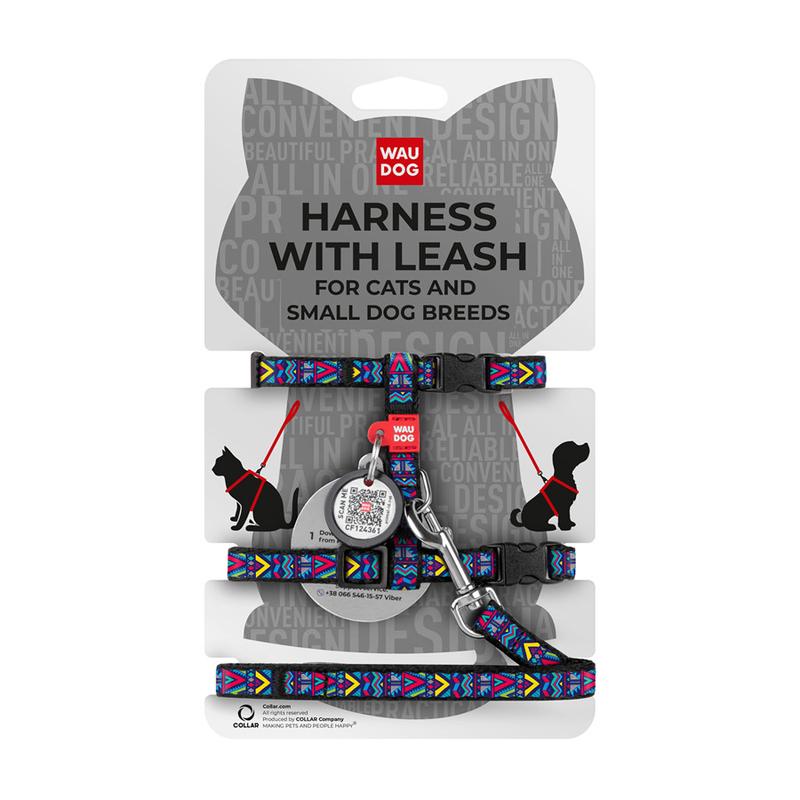 Шлея з повідцем waudog nylon з qr паспортом, малюнок "інді", пластиковий фастекс, ш 10 мм,...