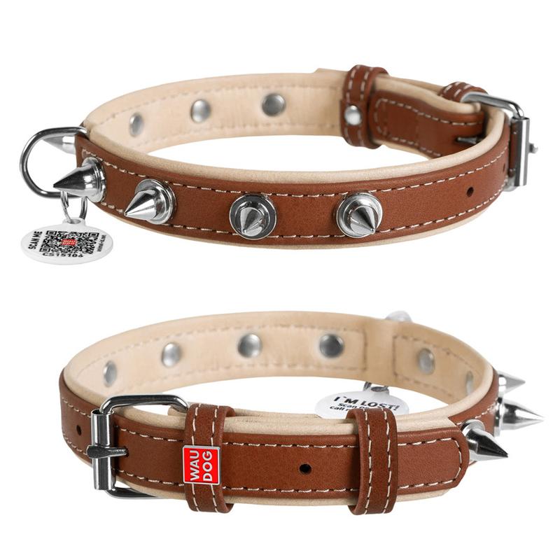 Нашийник для собак шкіряний waudog soft з qr паспортом, з шипами, ш 20 мм, дов 30-39 см ко...