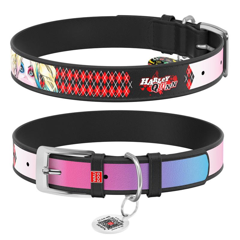 Нашийник для собак шкіряний waudog design з qr паспортом, малюнок "харлі квін", ш 12 мм, д...