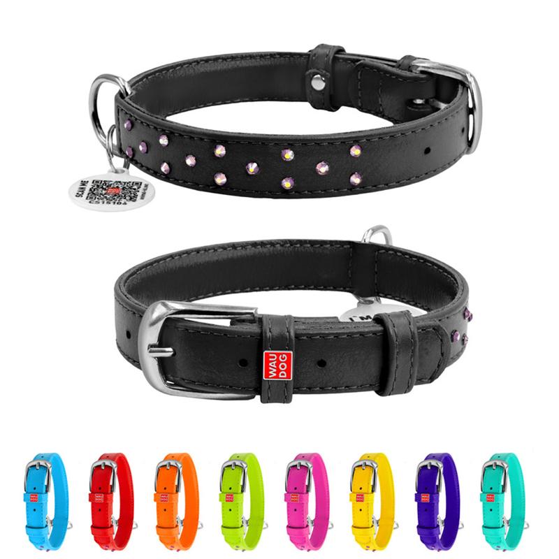 Нашийник для собак шкіряний waudog glamour з qr паспортом, з клейовими стразами, ш 20 мм,...