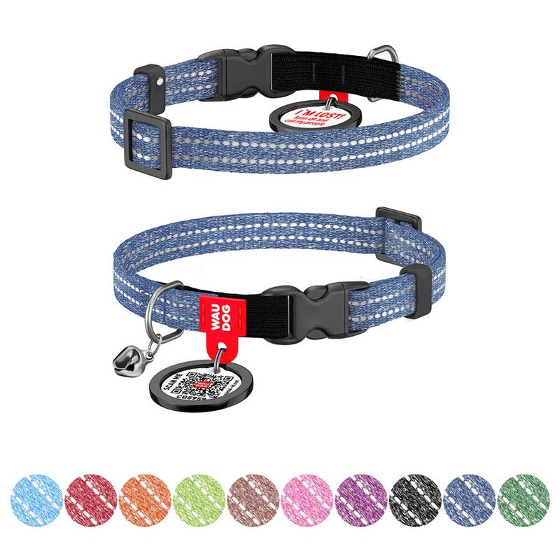 Нашийник для котів з відновленої бавовни waudog re-cotton з qr паспортом, світловідбиваючи...