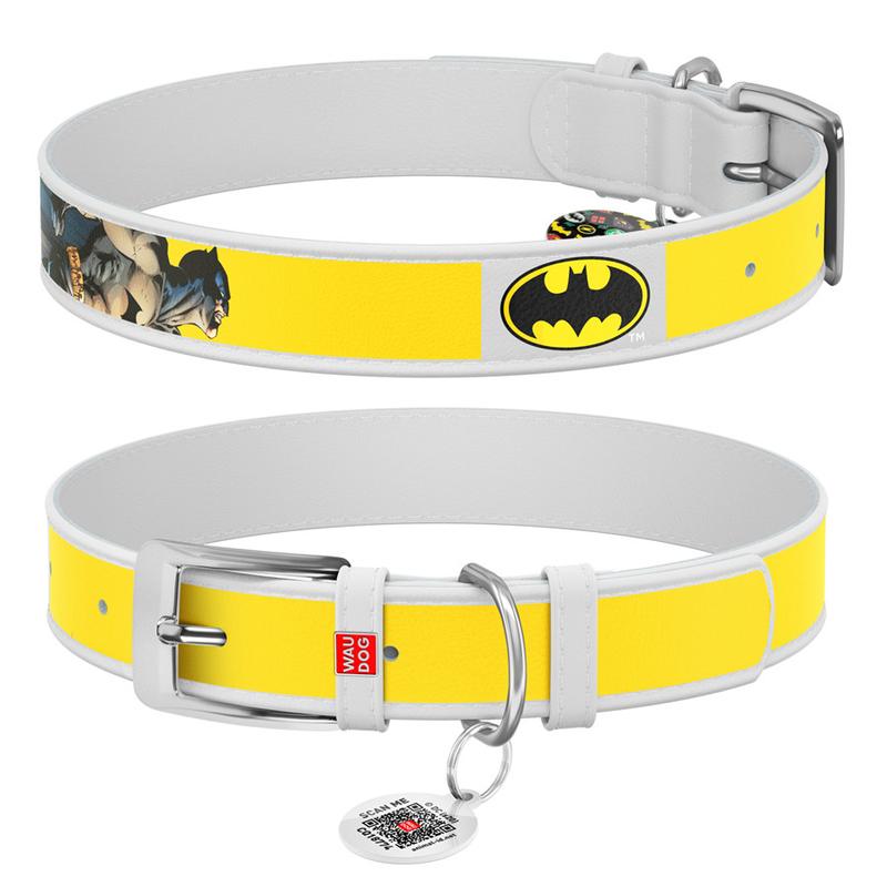 Нашийник для собак шкіряний waudog design з qr паспортом, малюнок "бетмен2", xl, ш 35 мм,...