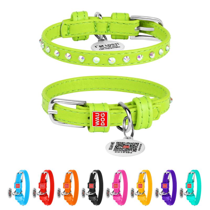 Нашийник для собак шкіряний waudog glamour з qr паспортом, з клейовими стразами, ш 9 мм, д...