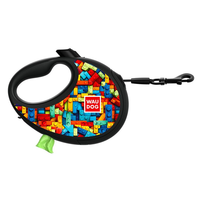 Поводок-рулетка для собак waudog r-leash с контейнером для пакетов, рисунок "блоки", свето...