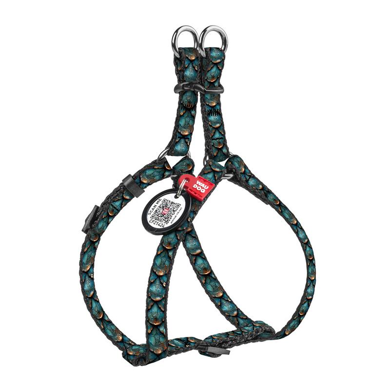 Шлея для котов и мелких пород собак waudog nylon c qr адресником, рисунок "чешуя", пластик...