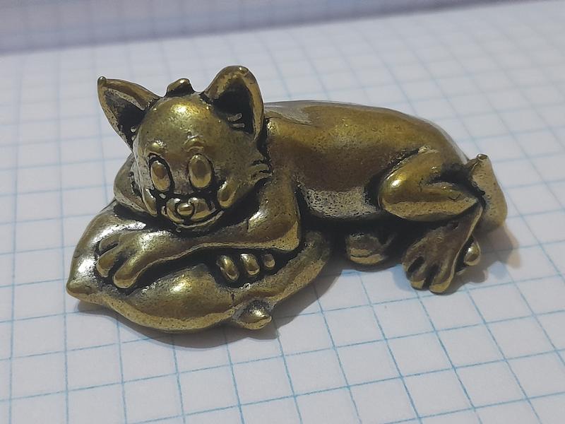 Кіт на перині — невеликий художній виріб, який вражає своєю ніжністю та уважністю до деталей. Вага становить 32.9 грама, висота 27 мм й довжина 46мм . Цей шедевр стане чудовим подарунком для колекціонерів та любителів мініатюри, переносячи вас до чарівного світу та естетики мистецтва