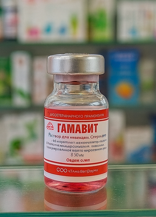 Гамавіт — є біотонізувальним засобом для профілактики та лікування в разі анемій, гіповітамінозів, отруєнь, виснаження, інфекцій, інвазіїв і стимуляції імунітету. Склад: на основі активних речовин: плацента денатурована емульгована (ПДЕ) і нуклеїнат натрію. За зовнішнім виглядом являє собою прозору, червону рідину, яка складається з паросткового поживного середовища, що містить збалансований розчин солей, амінокислот і вітамінів. Показання: Гемавіт застосовують для профілактики та лікування різних захворювань: проти анемій, гіповітамінозів, інфекційних та інвазійних захворювань, піометрів, отруєнь, у післяопераційний період, у разі токсикозах вагітності, пологів, а також під час підготовки тварин до виставок, змагань і транспортування.