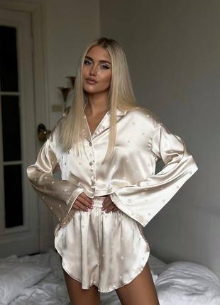 Піжама лео принт сорочка + шорти капучіно шоколад беж