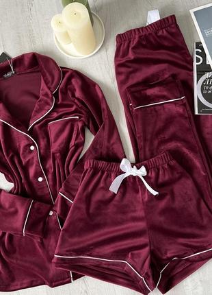 Жіноча красива піжама з оксамиту, сорочка і штани домашній костюм