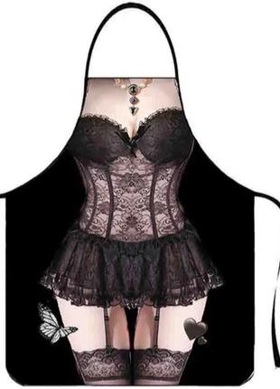 Фартух прикольний для чоловіків жінка в мереживній білизні 80 на 60 см різнобарвний