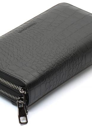 Черный кошелек-клатч на две молнии с фактурной натуральной кожи marco coverna mcjp-5902b