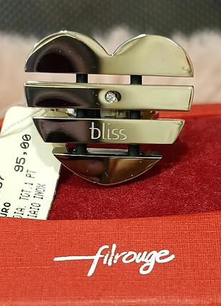 Серебряное кольцо с золотыми напайками и белыми фианитами широкое шанель