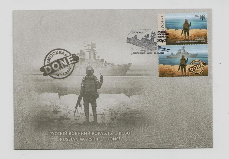 Конверт зі спецпогашенням марки русский военный корабль корабель всьо зсу війна в україні