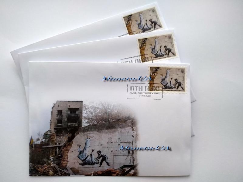 Поштовий конверт 4 птн пнх з маркою f штамп львів 2023 нхк вanksy