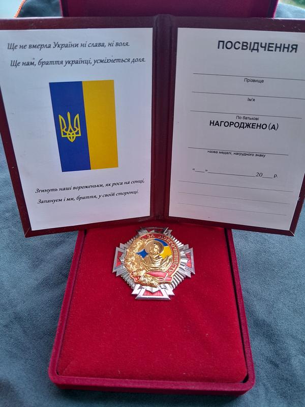Нагрудний знак за доброчинність з посвідченням у футлярі оксамитовому