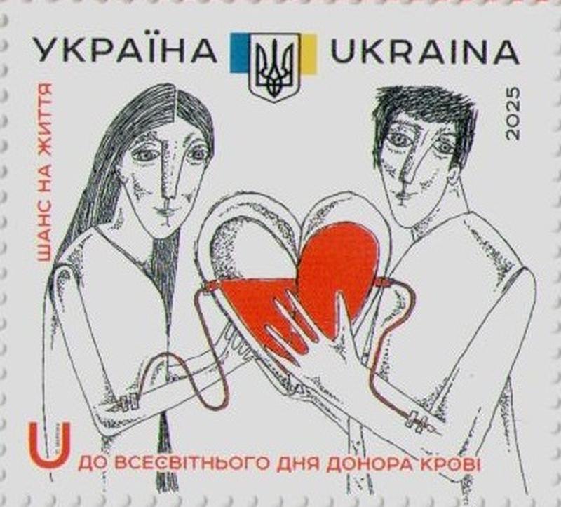 2025 марка до всесвітнього дня донора крові. шанс на життя серце медики
