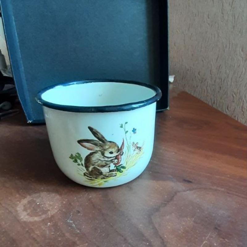 Чашка эмалированная сср "заяц с морковью и мышка".