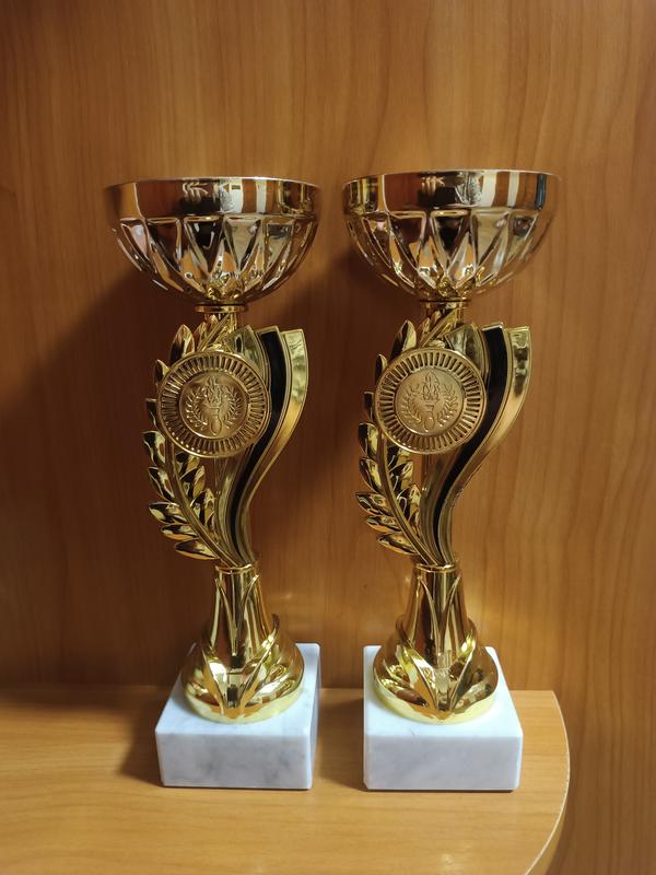 --- 🎖️ Імпортні трофеї з Англії — набір із 2 штук, висота 24 см Вишукані золоті трофеї, привезені з Великобританії. Ідеальні для декору, фотозон, колекції або як стильний подарунок. 🔸 Матеріали: біла мармурова основа, металевий корпус із гравіюванням, декоративні елементи з лавровим листям та факелом 🔸 Висота: 24 см 🔸 Стан: чудовий, без пошкоджень 🔸 Походження: Англія, оригінальний імпорт 🔸 Кількість: 2 шт. у наборі ✨ Створюють атмосферу перемоги та елегантності. Підійдуть для інтер’єру в стилі лофт, ретро або арт-деко. 💰 Ціна: 480 грн за набір (2 шт.)