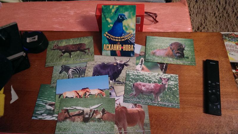 Открытки с животными и книгаброшюра о биосферном заповеднике аскания-нова