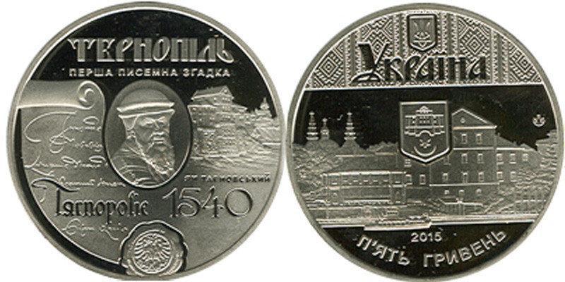 5 гривен / гривень 2015 "475 років першій писемній згадці про м. тернопіль" №339/1