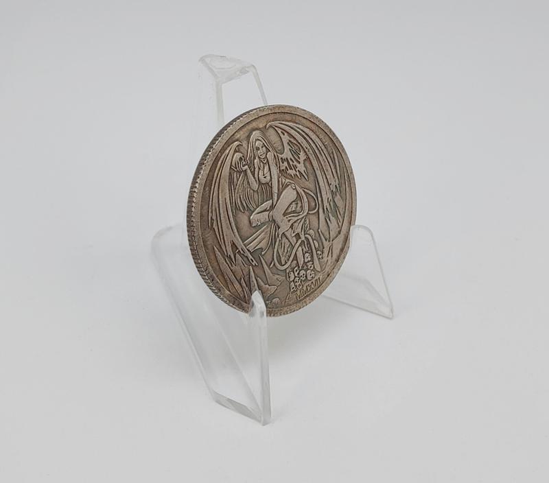 Держатель для монеты (акрил прозрачный) Материал изготовления - прочный, аккуратный и хорошего качества прозрачный акрил. Высота 5,50 см., ширина 4,30 см., глубина 5,50 см., толщина стенок 0,15 см., вес 5.97 грм., угол наклона 106,50 градусов.