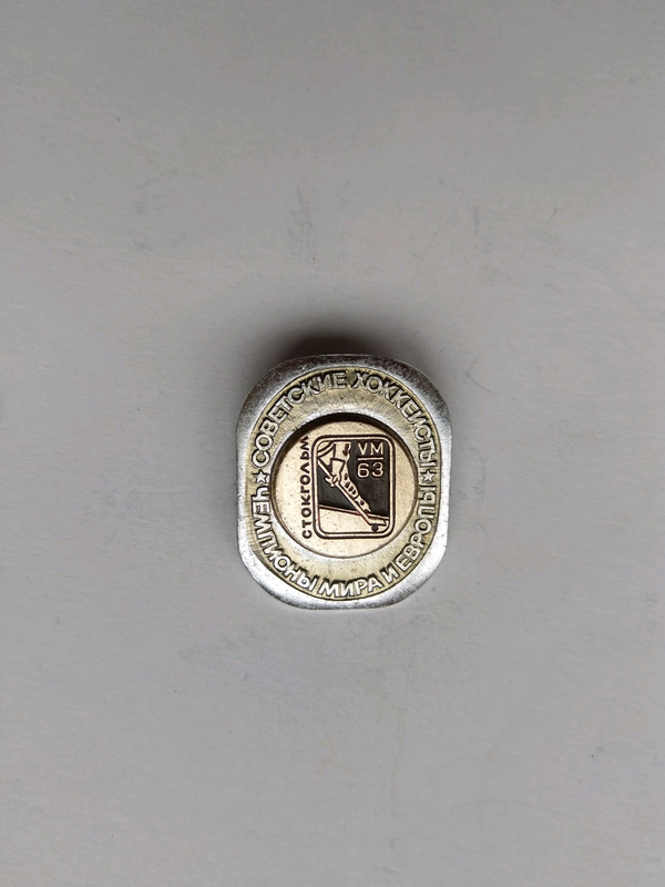 Значок чемпіонатів світу та європи з хокею із шайбою 1963 рік.