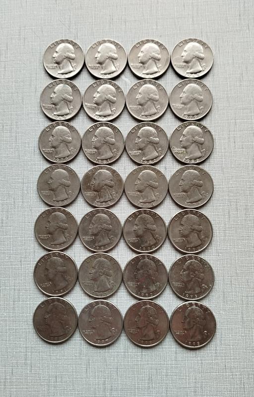 Монеты 25 центов США из обихода, состояние на фото. 28 штук разные года, без повторов. Цена указана за все монеты. Оплата на карту. Отправка Укрпочта, Новая Почта. Покупка через Безопасную Оплату +15%.