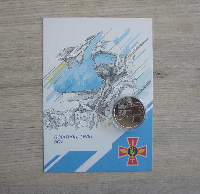 Подарунковий набір монета нбу повітряні сили зсу збройні сили україни + листівка укрпошта