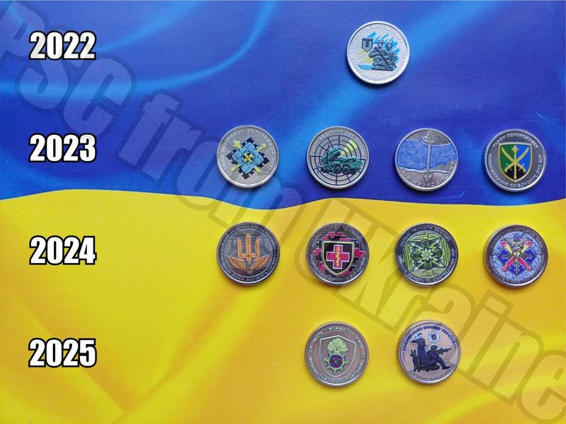 Повний набір КОЛЬОРОВИХ коллекційних монет з капсулами (11 шт) ЗСУ 2022-2025 в альбомі ( серія продовжується )