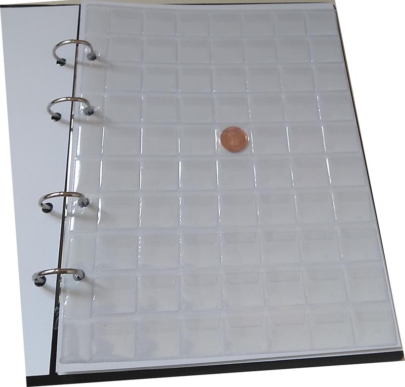 Аркуш для зберігання монет на 70 комірок із клапанами. Розмір аркуша 200*250 мм. Підходить під альбоми OPTIMA Розмір комірки 21х21 мм.