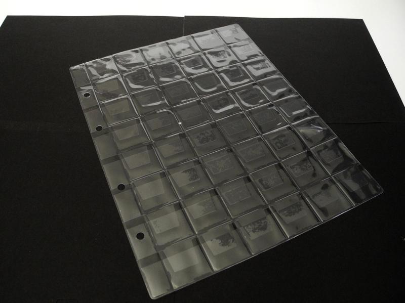 Аркуш для зберігання монет на 48 комірок із клапанами. Розмір аркуша 200*250 мм. Підходить під альбоми OPTIMA Розмір комірки 27х27 мм