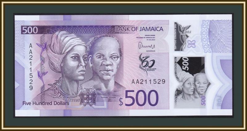 Ямайка - 500 доларів 2022 ( 2023 ) ямайка unc полімер "60 років ямайці" №388