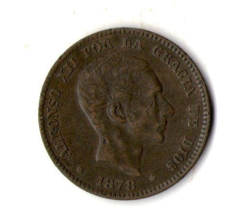 Іспанія › Король Альфонс XII 10 сентимів, 1878 рік Бронза, 10g, ø 30mm №2554