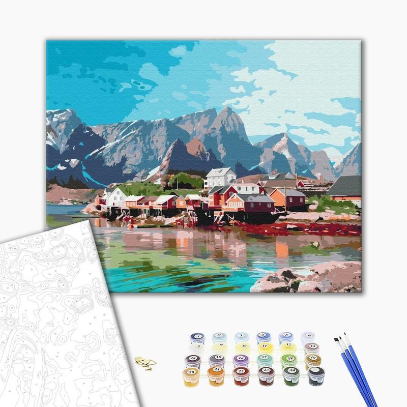 Картина по номерам 40х50 на деревянном подрамнике "поселок в хрустальных горах" bs52740