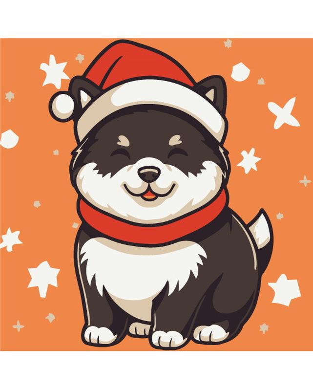 Картина за номерами 20х20 на дерев'яному підрамнику "різдвяне цуценя" mbs054