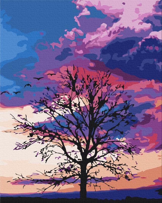 Картина за номерами 48х60 на дерев'яному підрамнику "осінь на фоні пурпурного неба" bs5227...