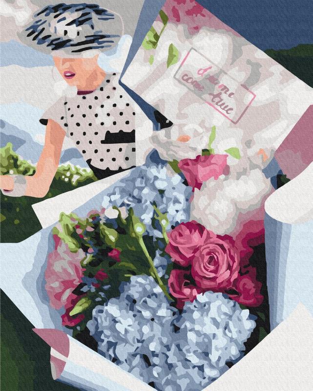 Картина за номерами 48х60 на дерев'яному підрамнику "букет для ретро леді" bs37545l